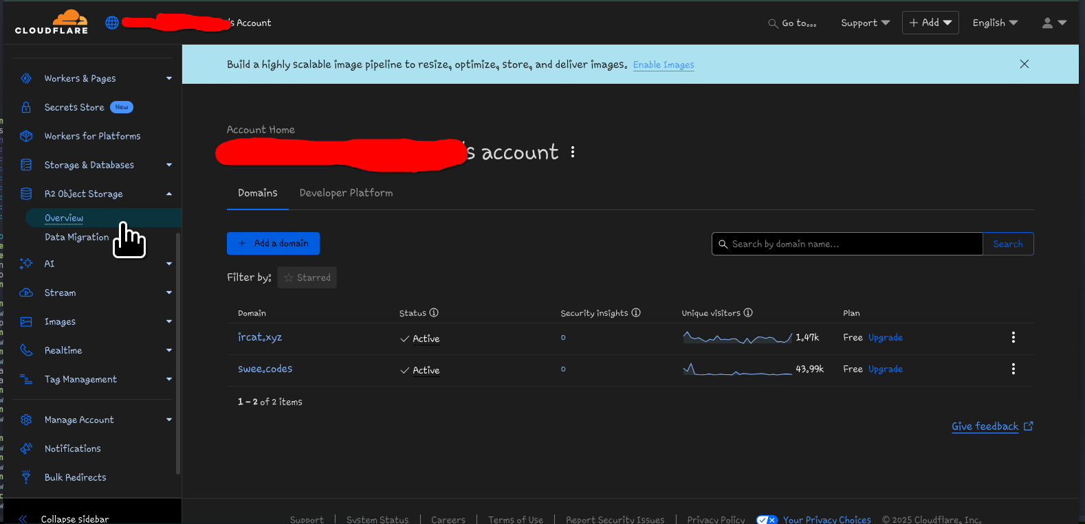 On another browser window, go to the Cloudflare Dashboard and go to R2 > Overview